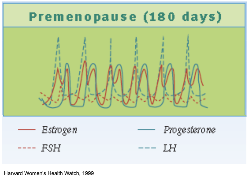 Remember when your cycle was predictable? (Or at least, more predictable?) During premenopause—that's the time even before perimenopause begins—our hormones follow a beautifully orchestrated dance. Thanks to research from Harvard Women's Health Watch, we can see exactly what this looks like.